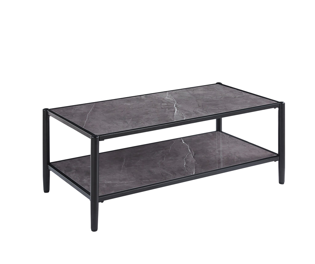 Ivy  Coffee Table With Bottom Shelf In White , Black And Grey