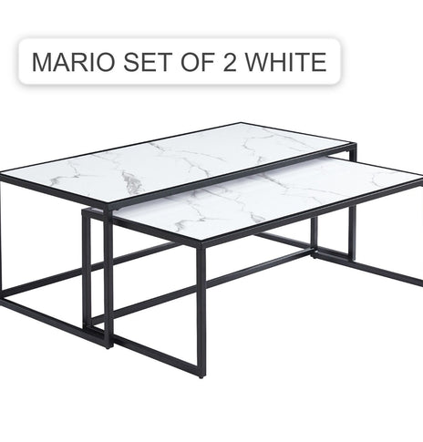 Mario  Set of 2 Piece Coffee Table Set In White , Black And Grey