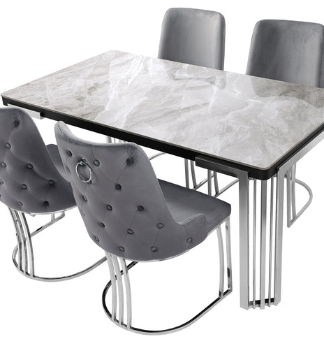 This Daisy Dining Table is a contemporary design suited to enhance any room in your home. Made with a powder-coated steel frame in gold or silver, it is supported by a Sintered Ceramic Stone...