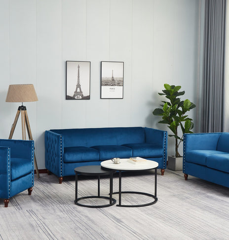 Rare Chesterfield Style Compact Sofa Set 3+2+1 Seater Armchair  In Plush Velvet