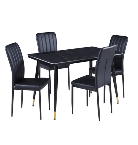 Product description This modern dining table is perfect for any contemporary interior. It comfortably accommodates four people and features a sleek design with the choice of gold or black frame legs. Its sturdy construction includes...