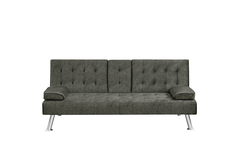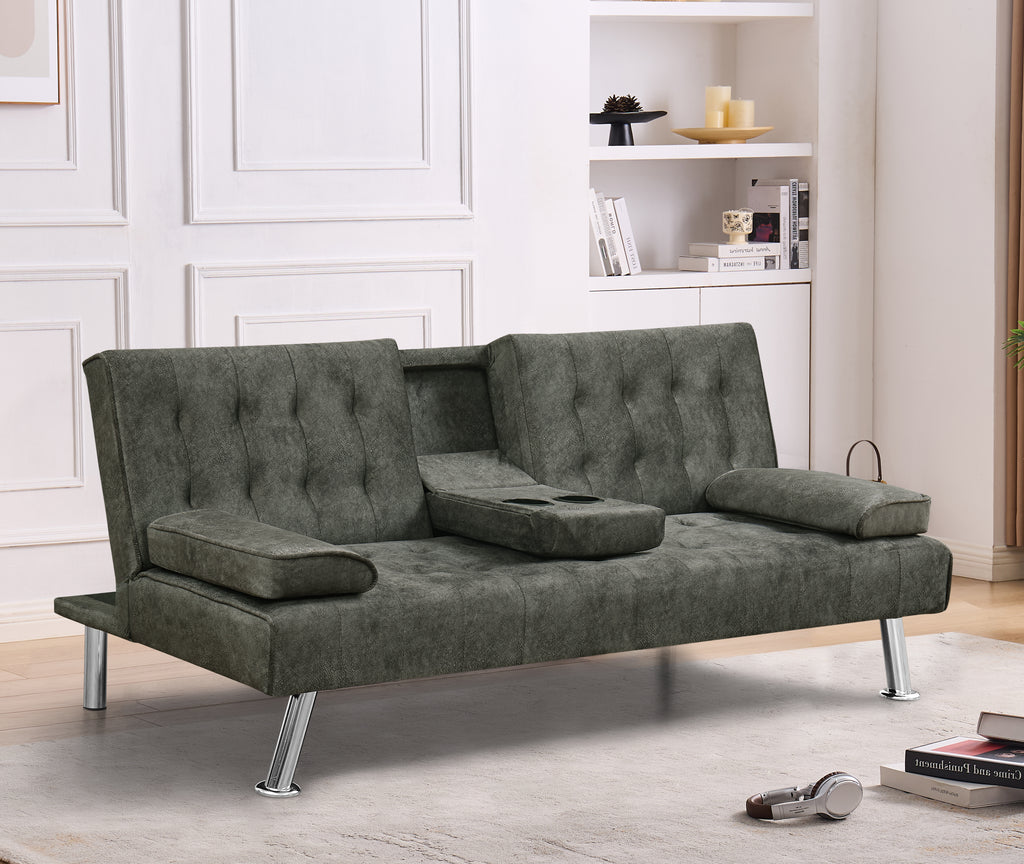 James Modern Convertible Sofabed with Cupholder – Black PU & Grey Fabric