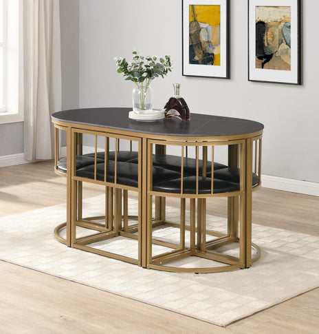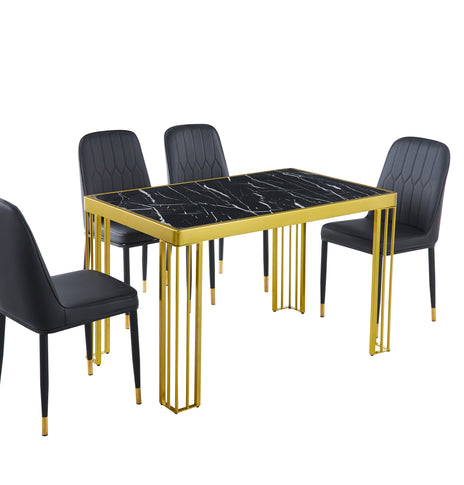 Madrid Modern 6-Seater Dining Table Set With 6 Chairs  – Stone Top with Elegant Metal Frame