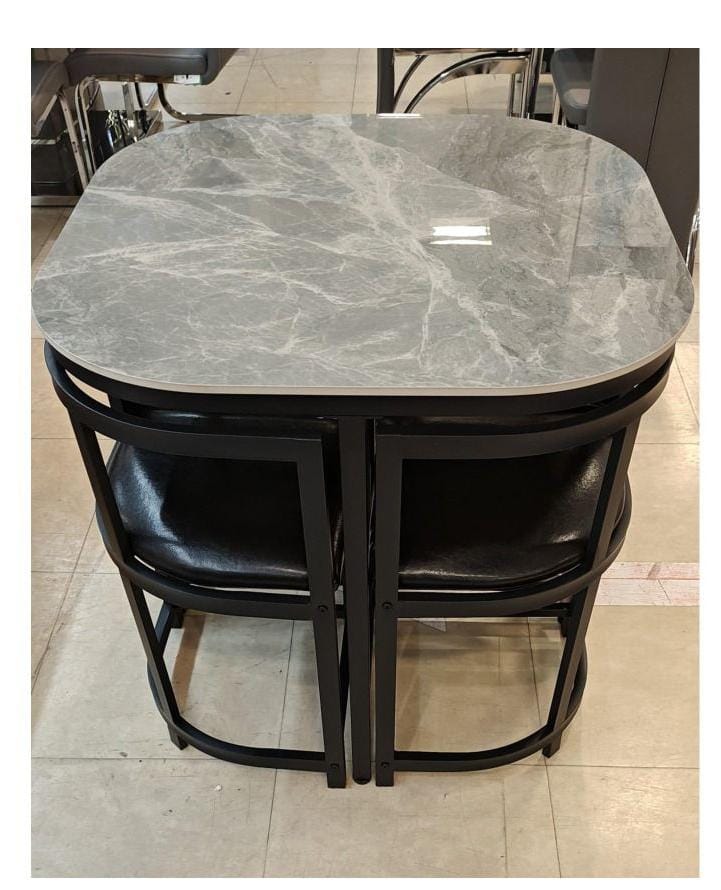 Upgrade your dining area with this beautifully designed space-saving dining set, perfect for apartments, condos, and compact living spaces. With its sleek metal frame, cushioned seats, and smooth faux-stone tabletop, this set blends contemporary style with smart functionality.
